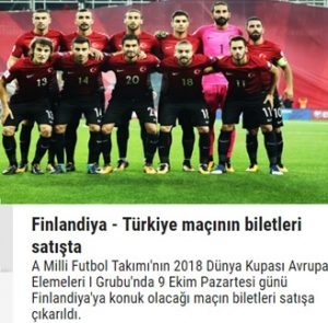 نشر الاتحاد التركي لكرة القدم عبر موقعه الرسمي على شبكة الإنترنت رابطًا للجماهير الراغبة في تشجيع منتخب النجمة والهلال في مباراته مع مضيفه الفنلندي ضمن تصفيات كـأس العالم.