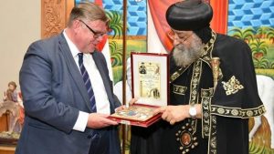 استقبل البابا تواضروس الثانى، بطريرك الأقباط الأرثوذكس، بالمقر البابوى بالكاتدرائية المرقسية بالعباسية، مساء اليوم، تيمو سوينى وزير خارجية فنلندا، الذى يزور القاهرة حاليًا.