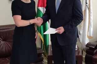 تسلم يوم الخميس 16 سبتمير / أيلول 2017، وزير الخارجية والمغتربين الفلسطيني رياض المالكي نسخة من أوراق اعتماد كل من سفيرة جمهورية فنلندا لدى دولة فلسطين آنا كايسا هيكينن، ونسخة أخرى من أوراق اعتماد رئيسة مكتب تمثيل مملكة الدنمارك الجديدة لدى دولة فلسطين نتاليا فينبرغ. وكان استقبال المالكي للدبلوماسيتين كلا على حدة، بمقر وزارة الخارجية والمغتربين في رام الله، بحضور …
